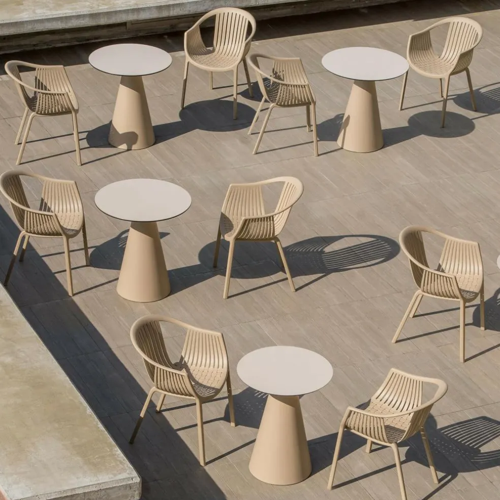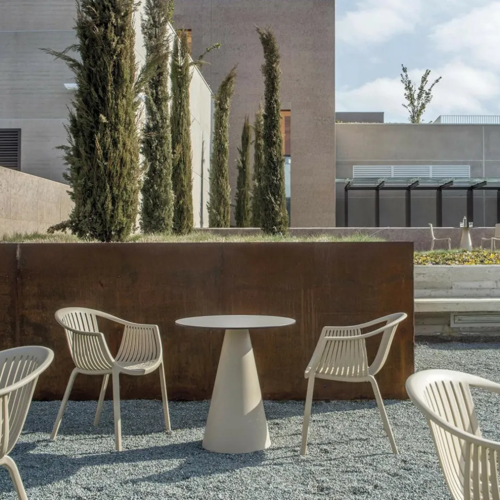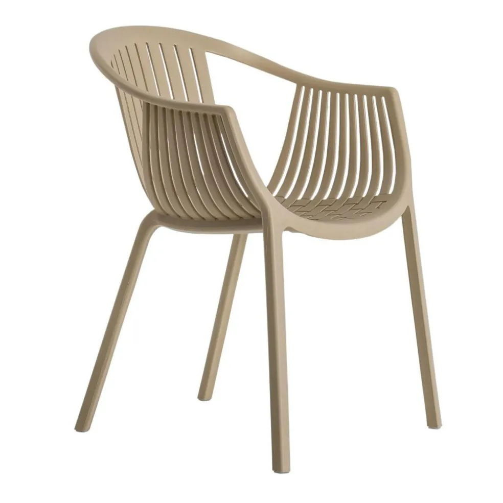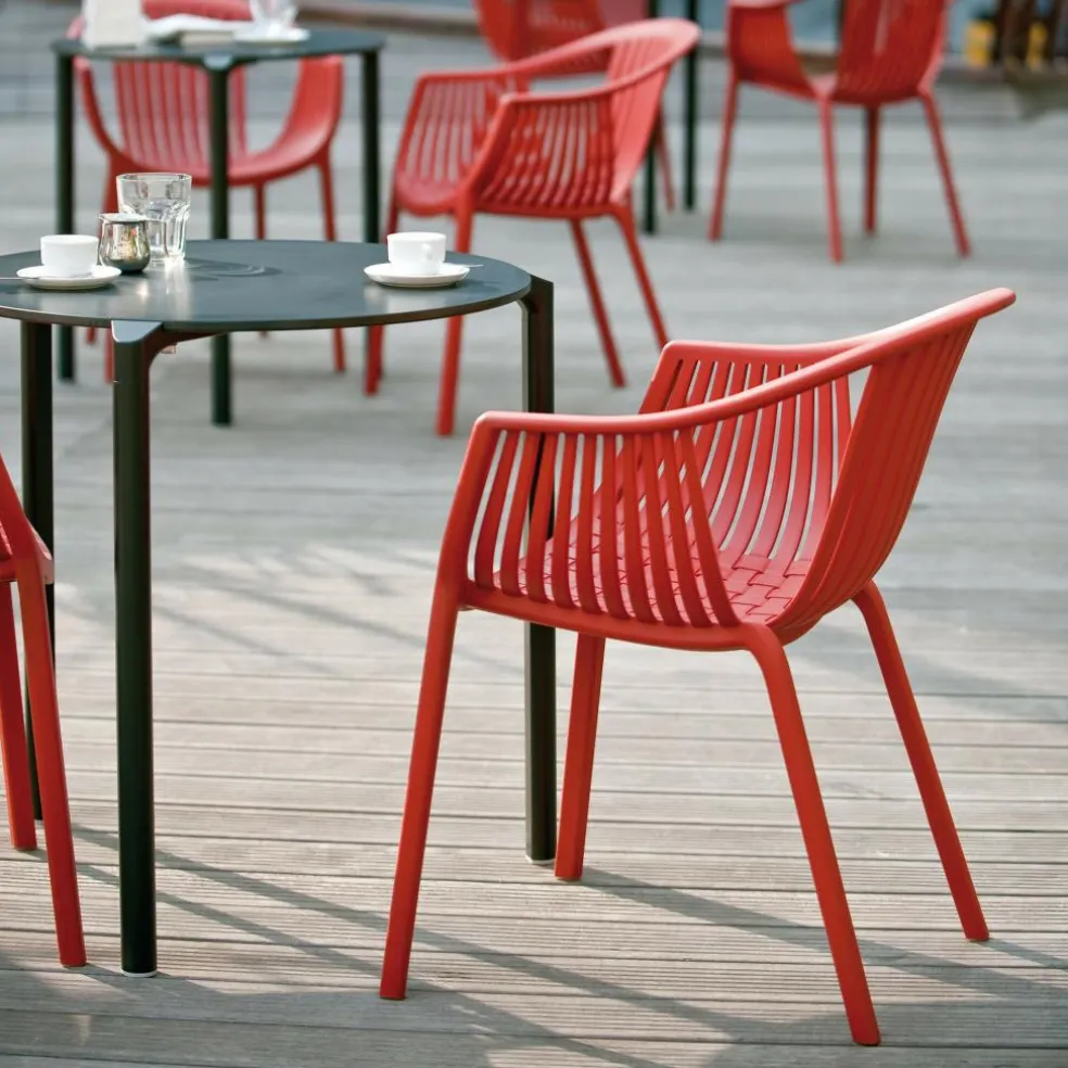 Der aus Polypropylen hergestellte Tatami 306 Gartenarmlehnstuhl wurde für Pedrali entworfen.