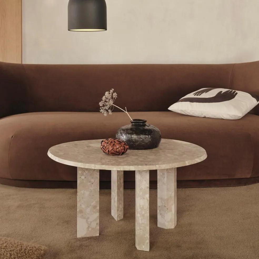 Der Taula Couchtisch Marmor wurde für die Marke Ferm Living entworfen. Inspiriert von den megalithischen Taula-Monumenten auf der Baleareninsel Menorca, verbindet das Modell antike Elemente mit zeitgenössischem Design.
