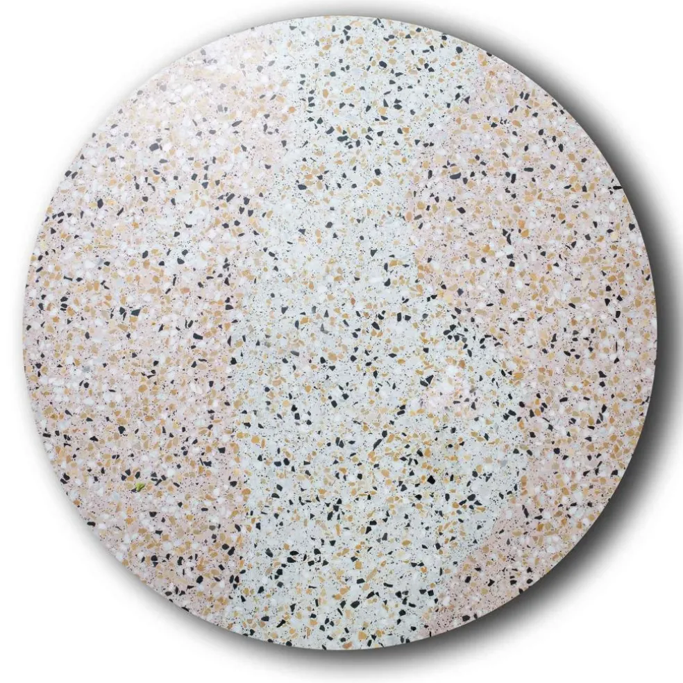Vom Design bis hin zur Fertigung wird der The Ring Table Esstisch Terrazzo Ø120cm gänzlich in Deutschland hergestellt. Das Gestell aus galvanisiertem und pulverbeschichtetem Stahl ist das Markenzeichen des Tisches. Es wird aus Rohren mit einem Durchmesser von 10 mm hergestellt. Die massive Tischplatte besteht aus Terrazzo. Dabei handelt es sich um einen Werkstoff, der bereits in der Antike verwendet wurde. In das Material sind dekorative, bunte Zuschläge eingearbeitet. So sieht jede Tischplatte ein wenig anders aus. Die Oberfläche ist pflegeleicht und kann mit einem weichen Tuch abgewischt werden. Der The Ring Table Esstisch Terrazzo Ø120cm ist wetterfest und daher für den Innen- und Außenbereich nutzbar. Er eignet sich für das Wohn- und Esszimmer ebenso gut wie für die Terrasse oder den Balkon.