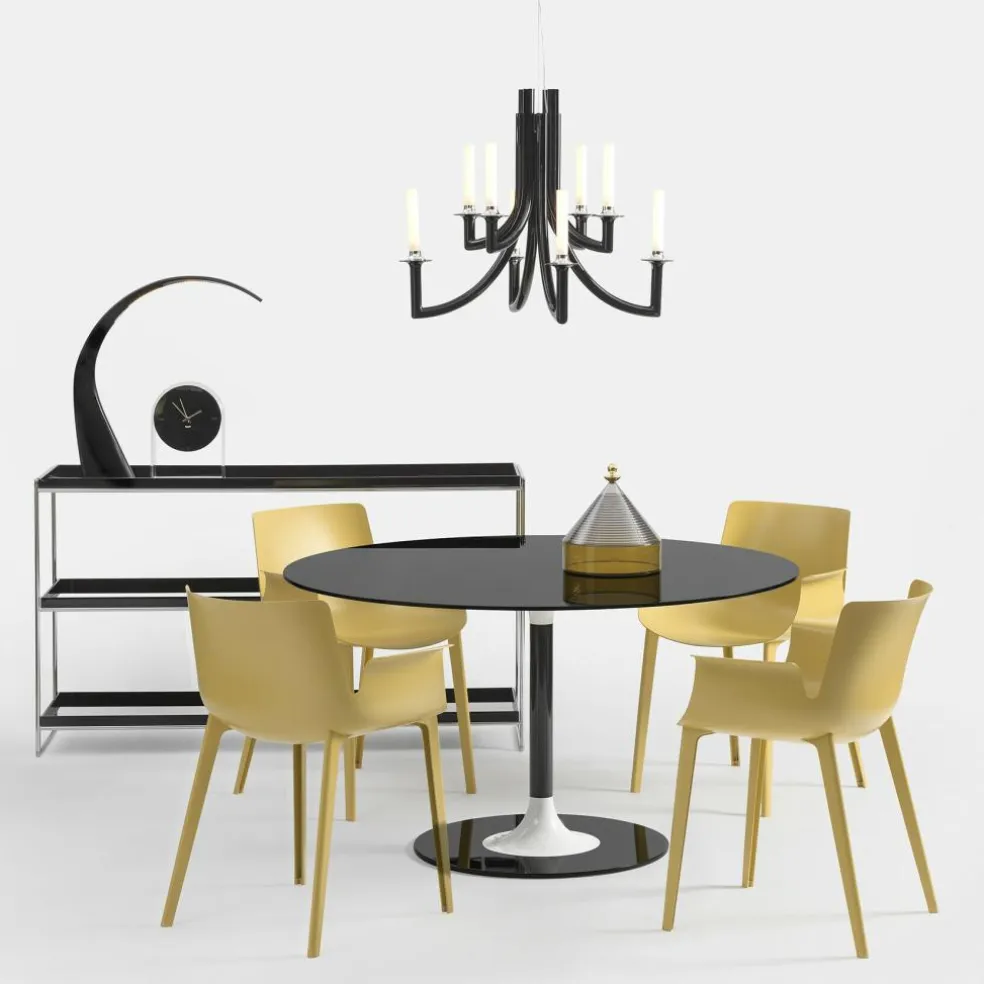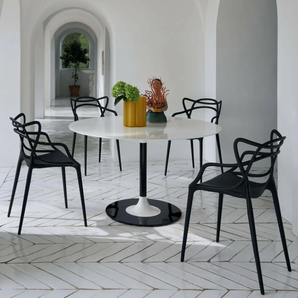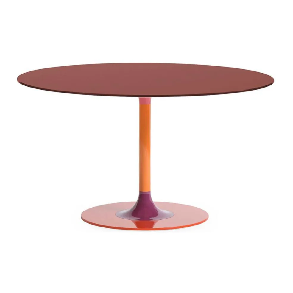 Der Thierry Esstisch XXL rund wurde von Piero Lissoni für die Marke Kartell entworfen. Der italienische Designer kreierte einen Tisch, der mit seinem Spiel aus runder Formgebung und kontrastreichen Farben begeistert.