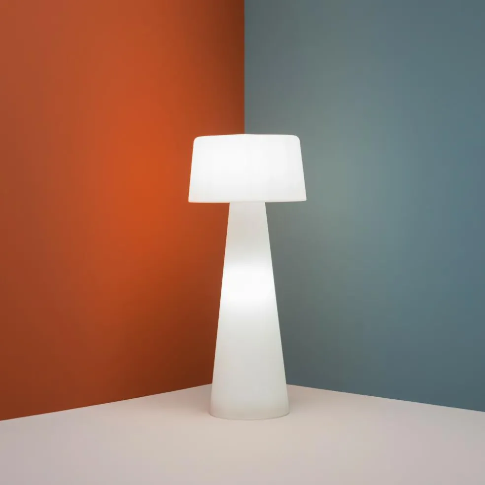 Beinahe wie ein Pilz mutet dieses raffinierte Kunstwerk aus Polyethylen an. Gleichzeitig strahlt es etwas Futuristisches, Geheimnisvolles aus. Verstärkt wird dieser Eindruck durch die schiere Größe von 190 cm und den Durchmesser von imposanten 80 cm. Mit dieser Größe und seinen Materialeigenschaften eignet sich dieses Design von Alberto Basaglia und Natalia Rota Nodari vor allem für größere Räume, in denen sich tagsüber viele Menschen aufhalten. Sehr gut kommt es beispielsweise in Gewerberäumen zum Einsatz. Außerdem kann es problemlos im Außenbereich eingesetzt werden. So eignet sich die Time Out Stehleuchte vor allem zur stilvollen Gestaltung von Eingangsbereichen.