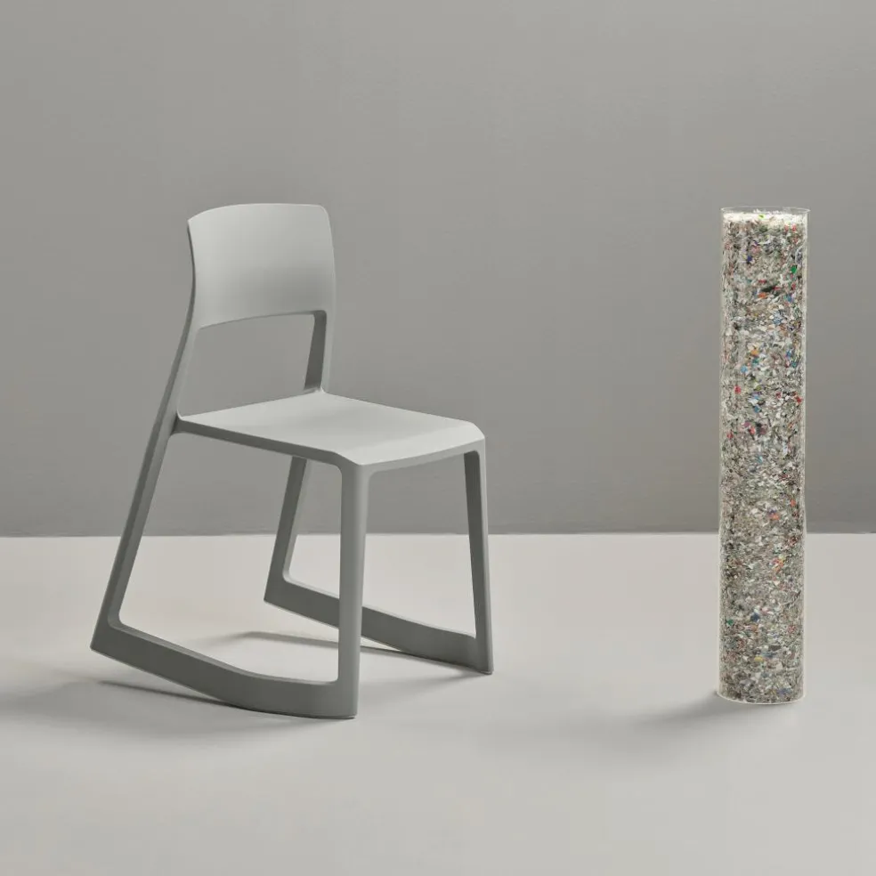 Der Tip Ton RE Schaukelstuhl wurde von Edward Barber und Jay Osgerby für die Marke Vitra entworfen. Er transportiert mit seinem minimalistischen Stil den Charme nostalgischer Schaukelstühle in das moderne Zeitalter. Die spezielle Form ist Resultat einer Studie der ETH Zürich, die ergab, dass eine vorgeneigte Sitzposition positiven Einfluss auf die Gesundheit an.