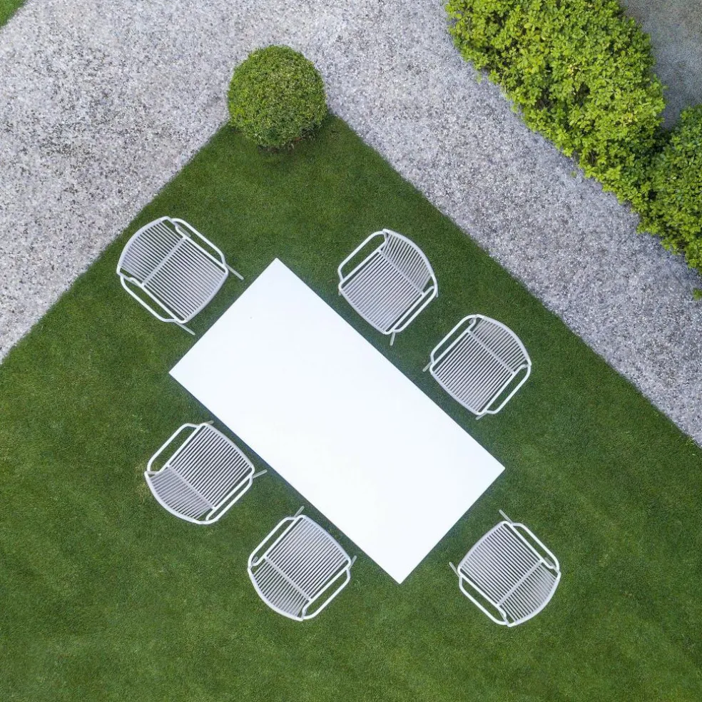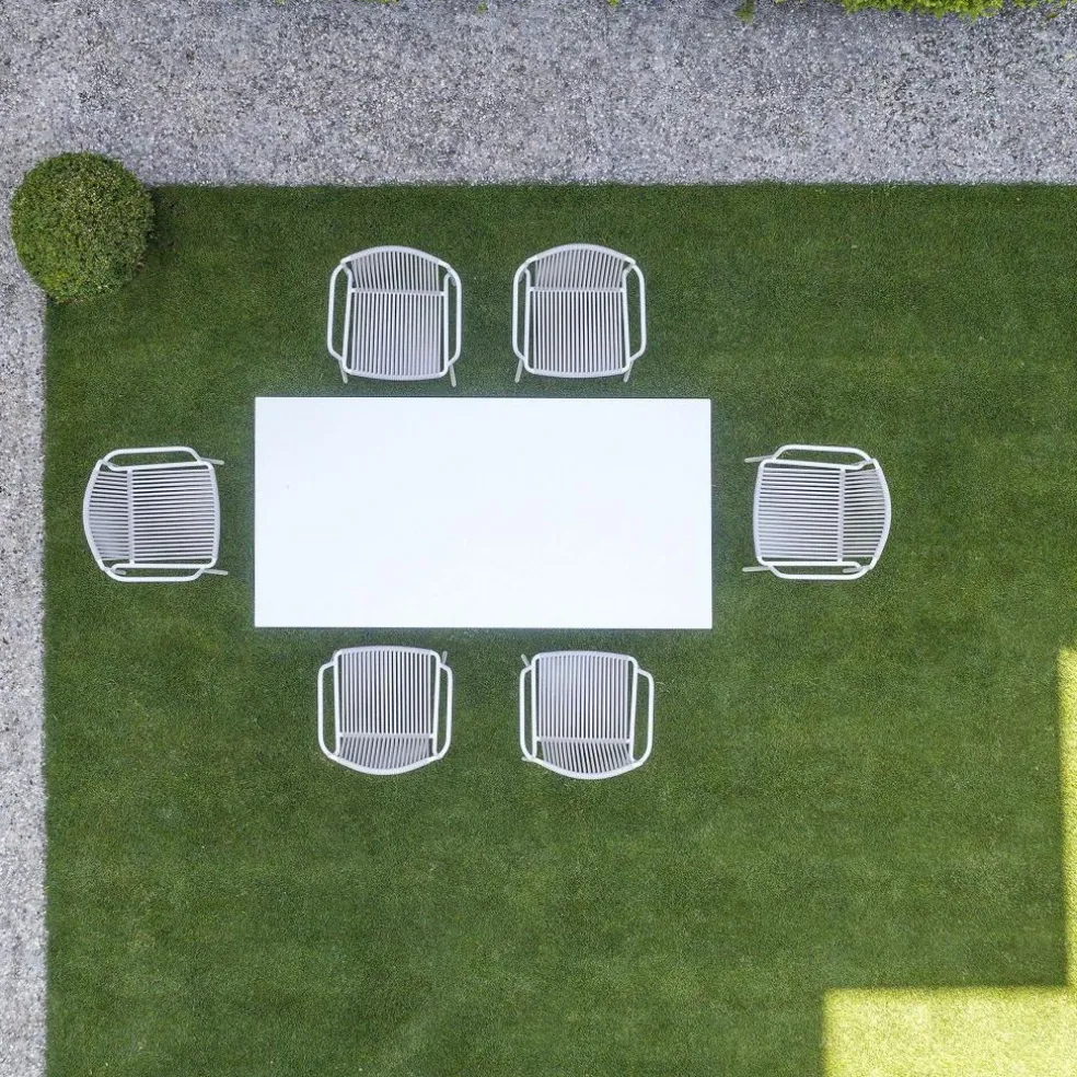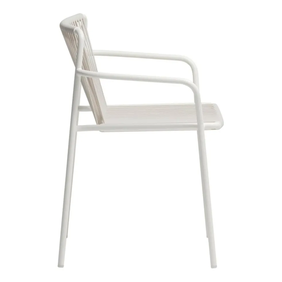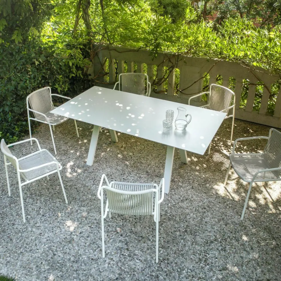 Der Tribeca 3665 Gartenarmlehnstuhl wurde von Simone Mandelli und Antonio Pagliarulo für den Hersteller Pedrali entworfen. Eine Hommage an die Sixties stellt dieser charaktervolle Armlehnstuhl dar, der in seiner modernen Neuinterpretation schwungvolle Schönheit mit den Anforderungen des dritten Jahrtausends kombiniert. Die Anlehnung an die Zeit der verchromten Riesenschlitten und der versteckten Erotik à la Marilyn Monroe findet sich auch in den Details des Tribeca 3665 Gartenarmlehnstuhls wieder. Die Neuauflage der klassischen Terrassenstühle der Sixties setzt auf geflochtenen Stahl. Das Gestell wird traditionell aus Stahlrohr gefertigt und für den Außenbereich wetterfest lackiert. Eine klassische Note erreicht der Stuhl auch durch die Bespannung von Rückenlehne und Sitzfläche, die aus extrudiertem PVC mit Nylonkern besteht. Natürlich ist Tribeca stapelbar.