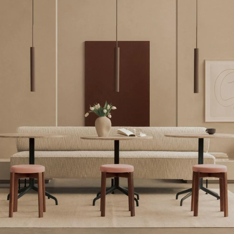 Die Tubulaire Pendelleuchte wiegt 700g. Ihr röhrenartiger Schirm hat neben einem sichtbaren industriellen Designwert einen Durchmesser von 5,6cm. Er ist in zwei unterschiedlichen Höhen erhältlich: 24cm und 48cm. Mit einer Kabellänge von 400cm lässt sich die Leuchte flexibel über einem Tisch montieren, sei es im Büro, im Essbereich oder in der Sitznische eines Cafés. Mehrere in einer Reihe oder als Cluster angebrachte Pendelleuchten der Tubulaire-Kollektion von Audo ergeben eine einzigartige Lichtinstallation.