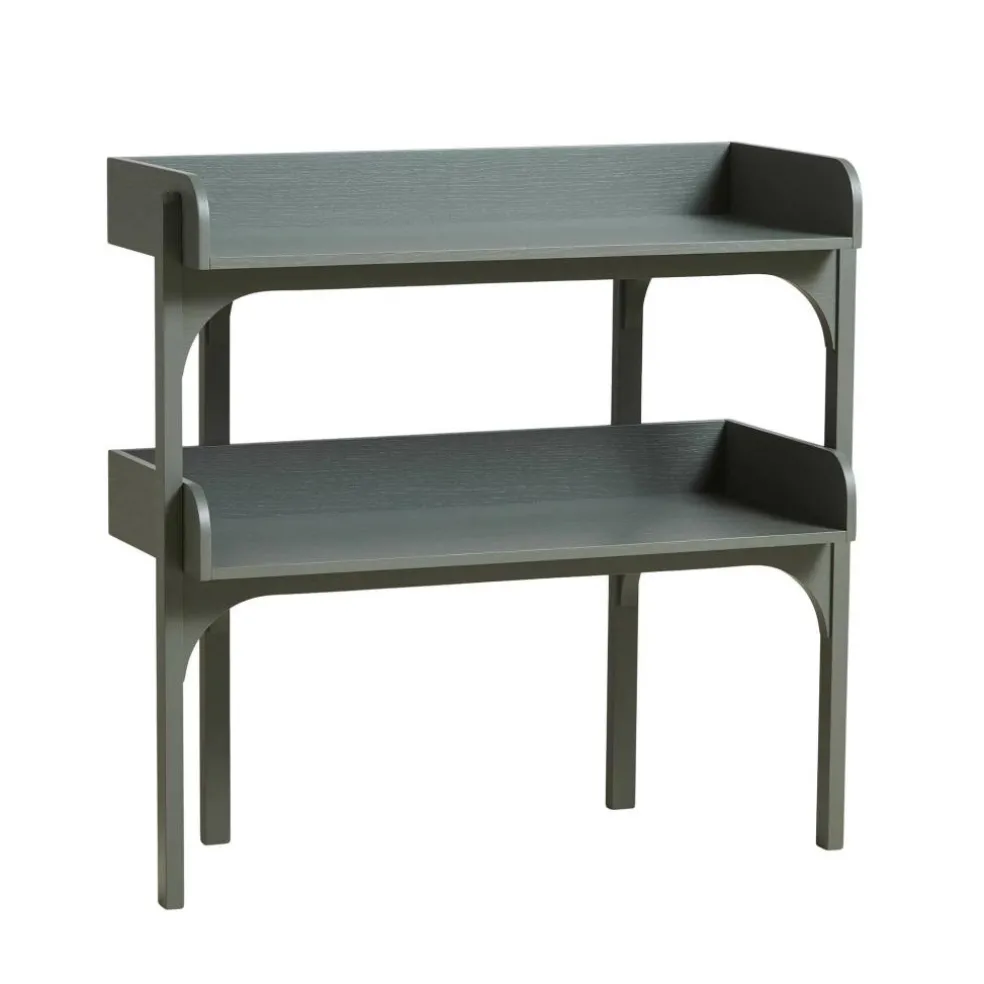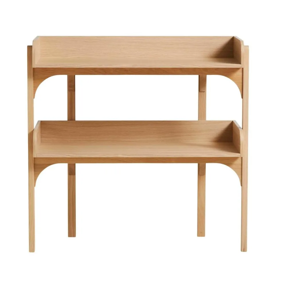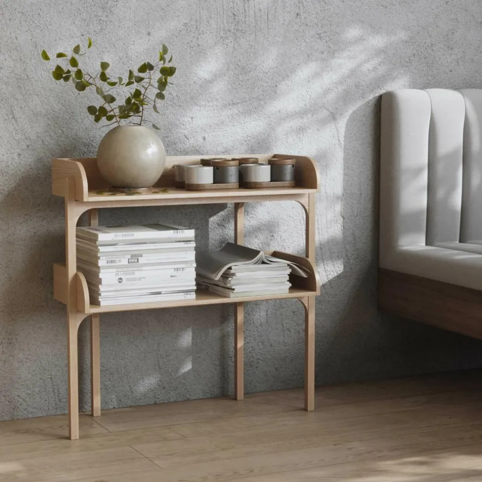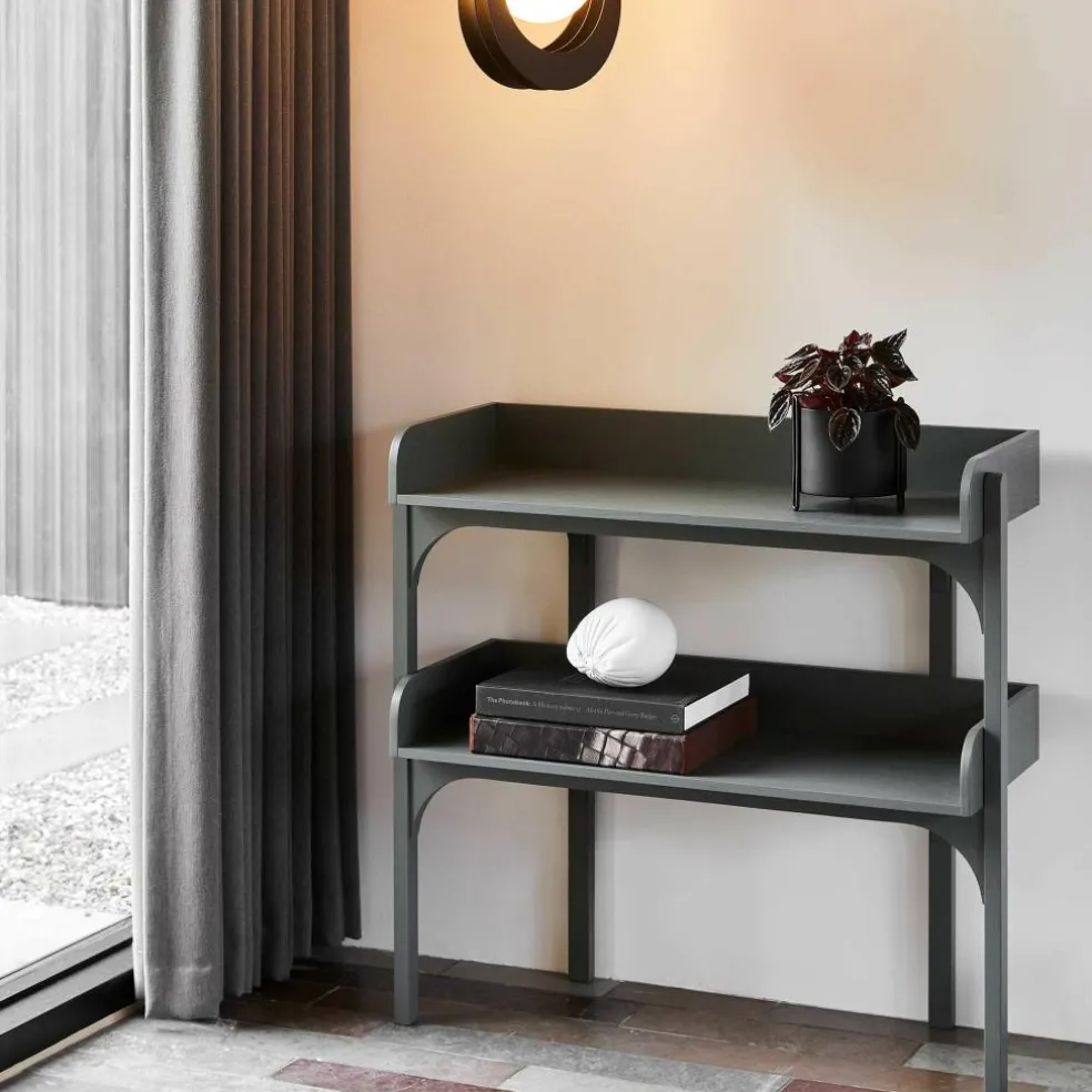 Die britische Designerin ging mit dem Anspruch an den Entwurf des Utility Regal s heran, eine Kombination aus Kommode und eines offenen Regals zu erschaffen. Deswegen verwendet sie Einlagebretter, die an drei Seiten mit einem Rahmen versehen sind. Er verhindert, dass auf dem Utility Regal abgestellte Gegenstände herunterfallen. Der Rahmen besteht aus massivem Eichenholz. Für die beiden Einlagebretter verwendet Heritage Eichenfurnier. An der Vorderseite beschreibt der Rahmen einen harmonischen Bogen nach vorne. Vier gerade geschnittene Füße sichern besten Stand. Auffallend ist, dass die beiden hinteren Beine nach innen versetzt sind. Man kann das Utility Regal in verschiedenen Farben bestellen. Es gibt unzählige Einsatzmöglichkeiten für das schlichte Regal: Es eignet sich für die Aufbewahrung von Geschirr in der Küche, für die Ablage von Handtüchern im Badezimmer oder als Stauraum für Arbeitsutensilien im Büro.