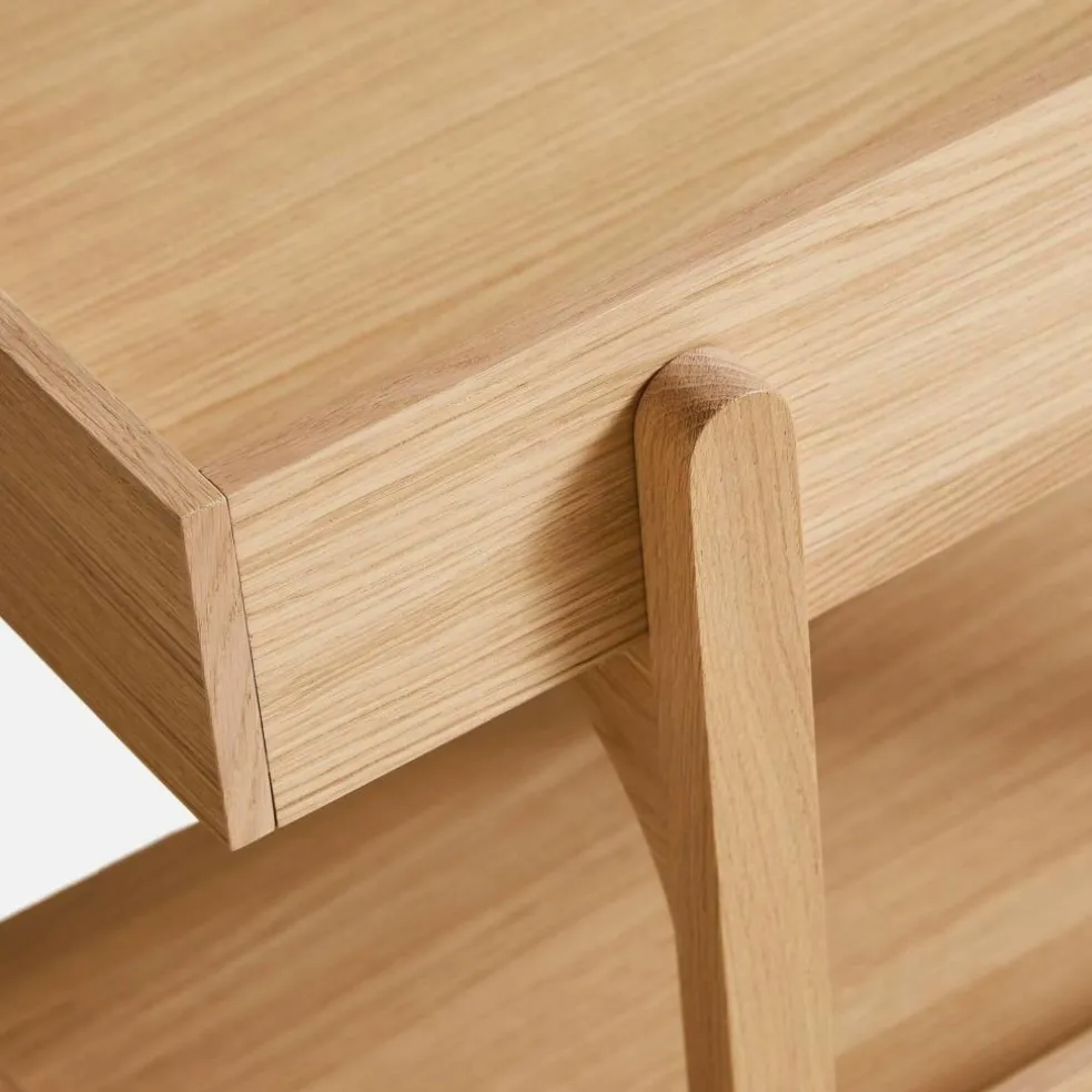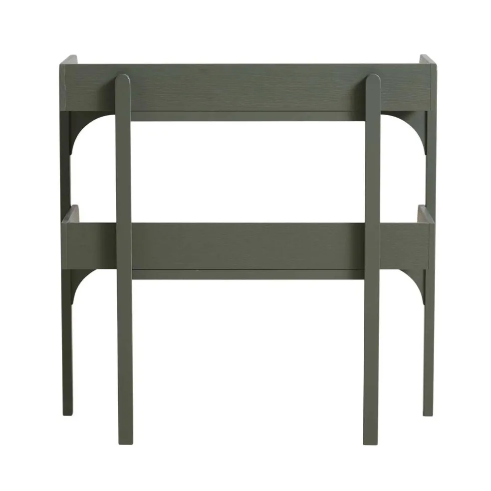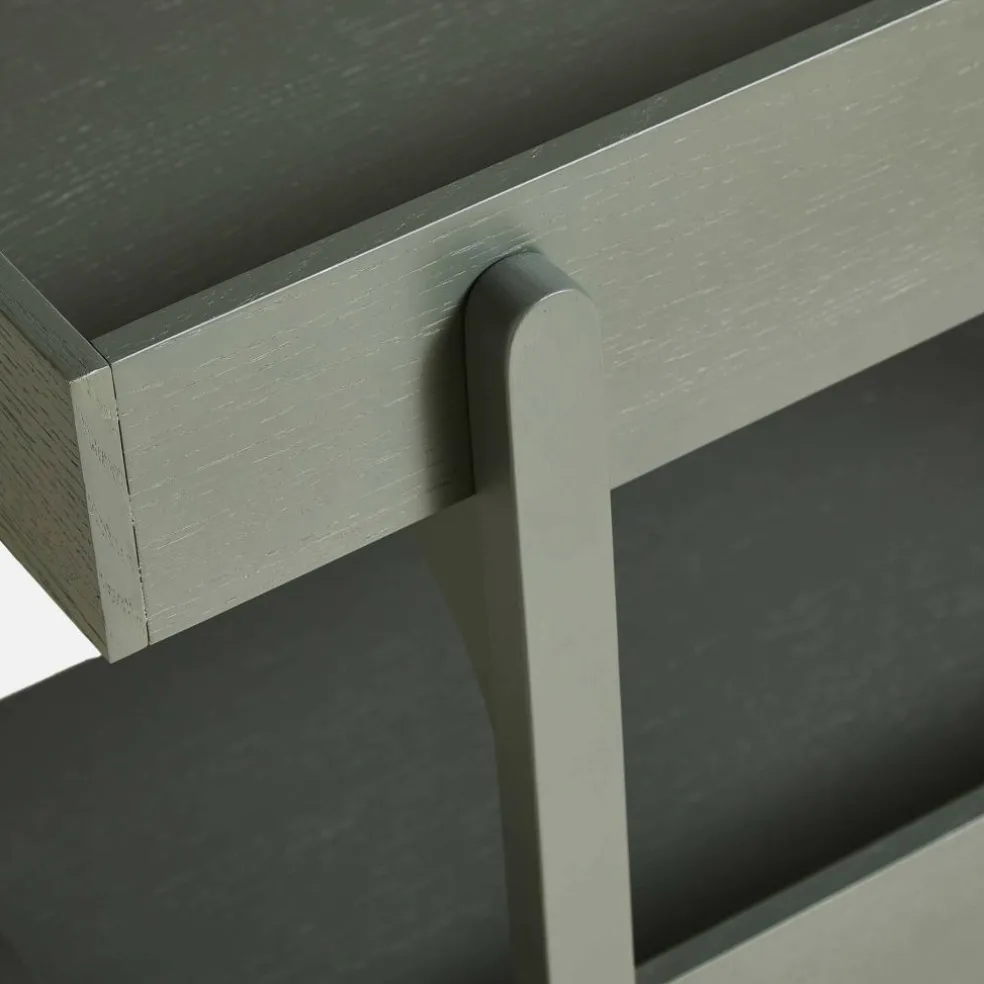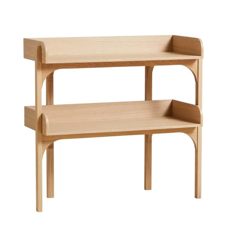 Die britische Designerin ging mit dem Anspruch an den Entwurf des Utility Regal s heran, eine Kombination aus Kommode und eines offenen Regals zu erschaffen. Deswegen verwendet sie Einlagebretter, die an drei Seiten mit einem Rahmen versehen sind. Er verhindert, dass auf dem Utility Regal abgestellte Gegenstände herunterfallen. Der Rahmen besteht aus massivem Eichenholz. Für die beiden Einlagebretter verwendet Heritage Eichenfurnier. An der Vorderseite beschreibt der Rahmen einen harmonischen Bogen nach vorne. Vier gerade geschnittene Füße sichern besten Stand. Auffallend ist, dass die beiden hinteren Beine nach innen versetzt sind. Man kann das Utility Regal in verschiedenen Farben bestellen. Es gibt unzählige Einsatzmöglichkeiten für das schlichte Regal: Es eignet sich für die Aufbewahrung von Geschirr in der Küche, für die Ablage von Handtüchern im Badezimmer oder als Stauraum für Arbeitsutensilien im Büro.