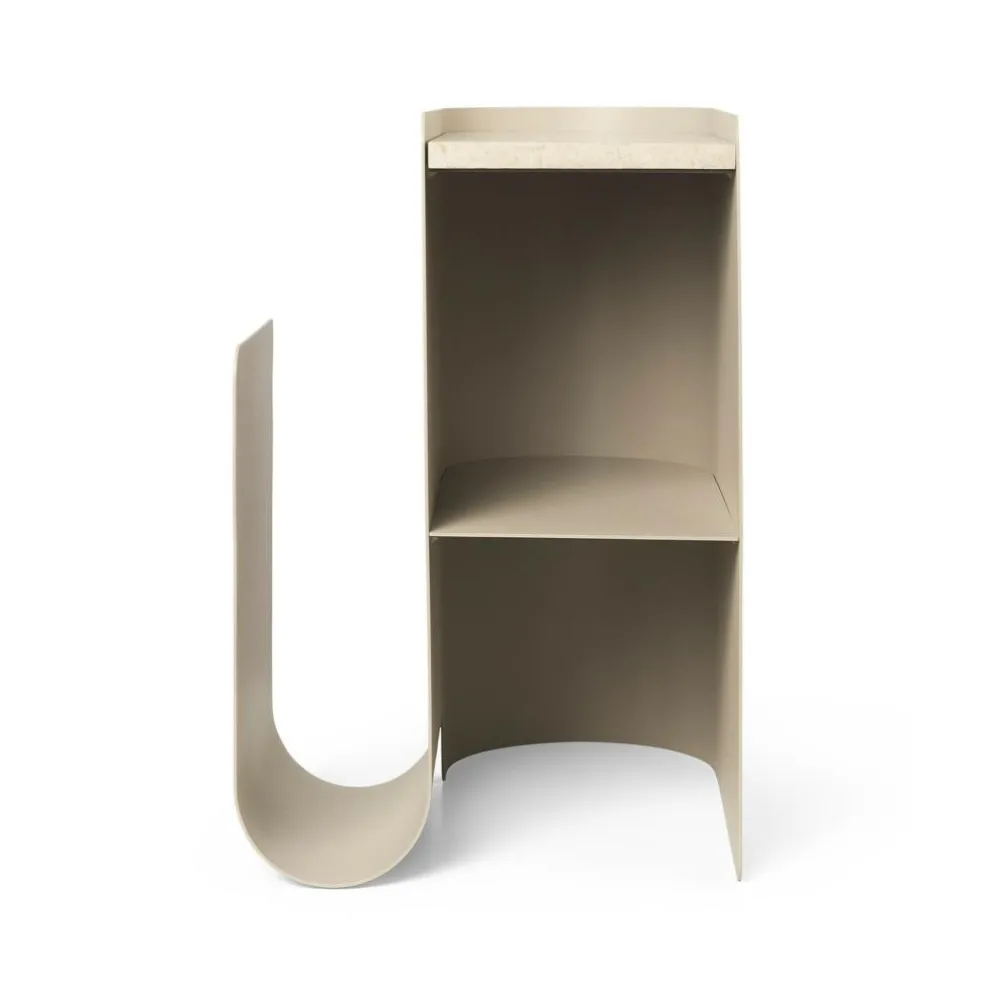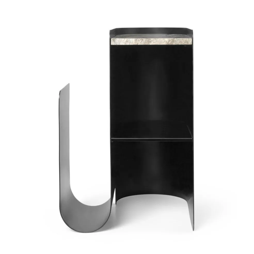Zwei verschieden gerichtete Bögen, die sich harmonisch zu einer Form zusammensetzen – damit hat das Metallgestell des Vault Beistelltisches einen skulpturalen Charakter und erfüllt gleichzeitig verschiedene funktionale Aufgaben. So kann das an der Unterseite gebogene Element Zeitschriften aufnehmen, während die gewölbte Rückseite Lieblingsbüchern Schutz bietet, die auf dem metallenen Boden stehen. Hergestellt aus pulverbeschichtetem Stahl schenkt das Gestell dem Designmöbel eine hohe Stabilität. Eine edle Tischplatte aus Marmor verleiht dem Designmöbel einen eleganten Touch. Es kann neben einem Lesesessel zum Ablegen der Lektüre dienen oder für einen Drink oder Snack beim Fernsehen. Je nach gewählter Ausführung passt sich der dezente Farbton des Vault Beistelltisches zurückhaltend in seine Umgebung ein oder hebt sich kontrastreich von einem hellen Ambiente ab.
