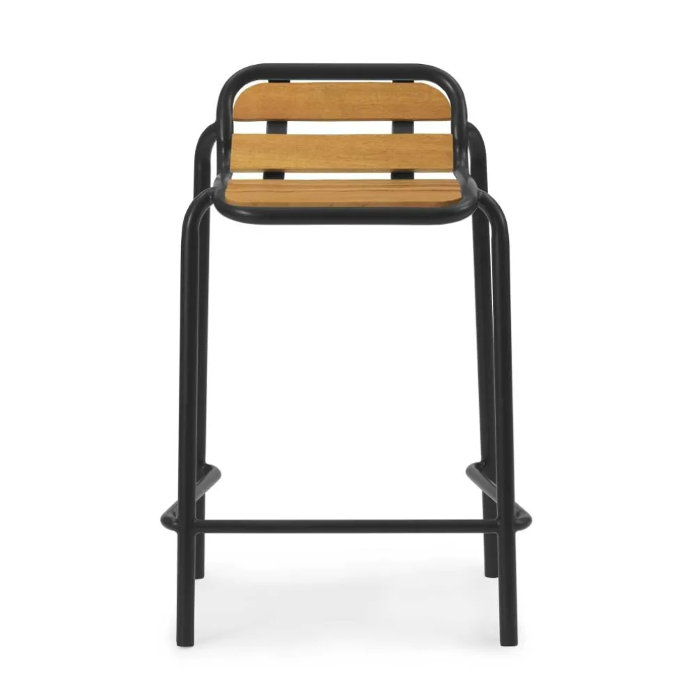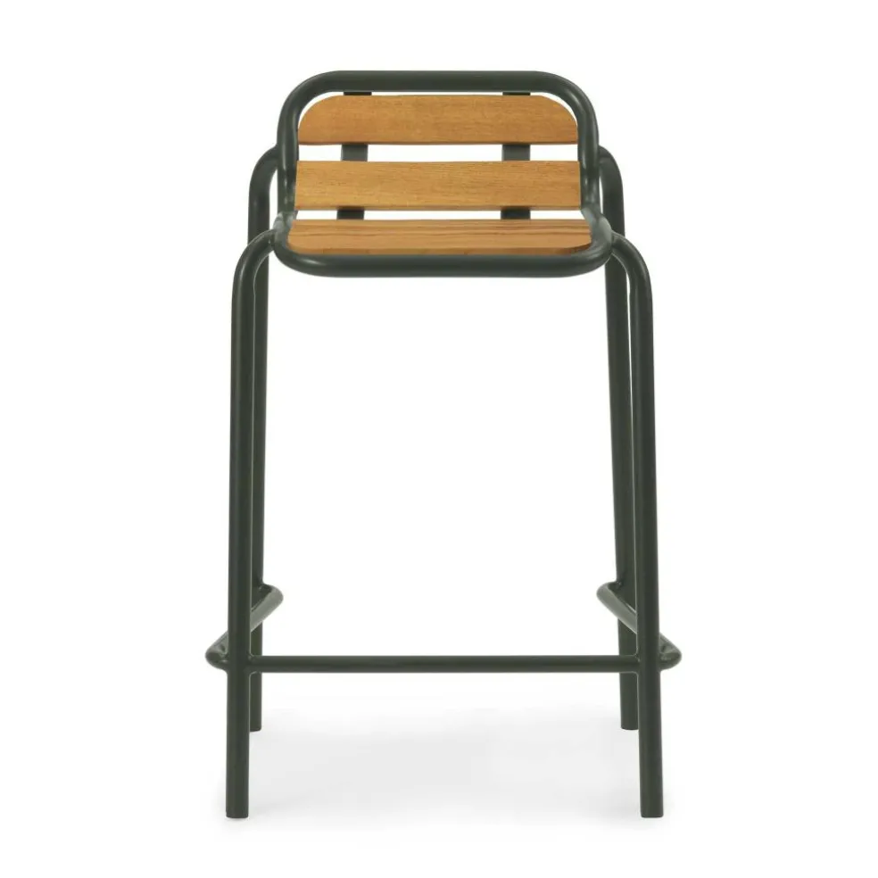 Für alle, die erhöht sitzen, aber nicht auf Komfort oder Stil verzichten möchten, bietet der Vig Gartenbarstuhl 65cm von Normann Copenhagen eine harmonische Verbindung aus Widerstandsfähigkeit, Funktion und natürlicher Eleganz.