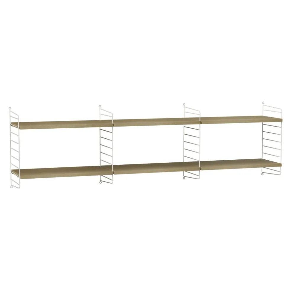 Auch das Wandregal 180x50cm lässt sich leicht als Bestandteil der legendären String-Kollektion erkennen: Die typischen Leitern aus pulverbeschichtetem Stahl in Kombination mit den MDF-Platten zeigen sich als Ausdruck klassischer schwedischer Designtradition. Das 30cm tiefe Wandregal lässt sich leicht an der Wand montieren und bietet auf den beiden Regalböden, die durch vier Stahlleitern getrennt werden, viel Platz. Das Wandregal 180x50cm ist ein charaktervoller und leicht wiederzuerkennender Klassiker, der sowohl zu Hause als auch im Büro eine hervorragende Figur macht. Entscheiden Sie sich für das luftige Möbelstück im Wohn- oder Lesezimmer, wenn Sie die schlichten Linien der skandinavischen Einrichtung bis ins kleinste Detail fortsetzen möchten. Auch im Schlafzimmer bringt das Wandregal Ordnung in die Buch- und Zeitschriftauswahl und dient auch zum Platzieren von schönen Bilderrahmen und Souvenirs von unterwegs. Das Arbeitszimmer profitiert von dem praktischen Aufbewahrungsmöbel ebenso wie Ihre Kanzlei.