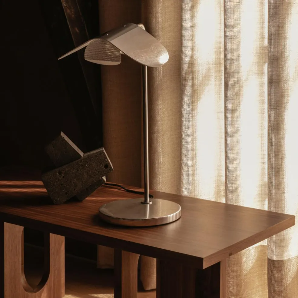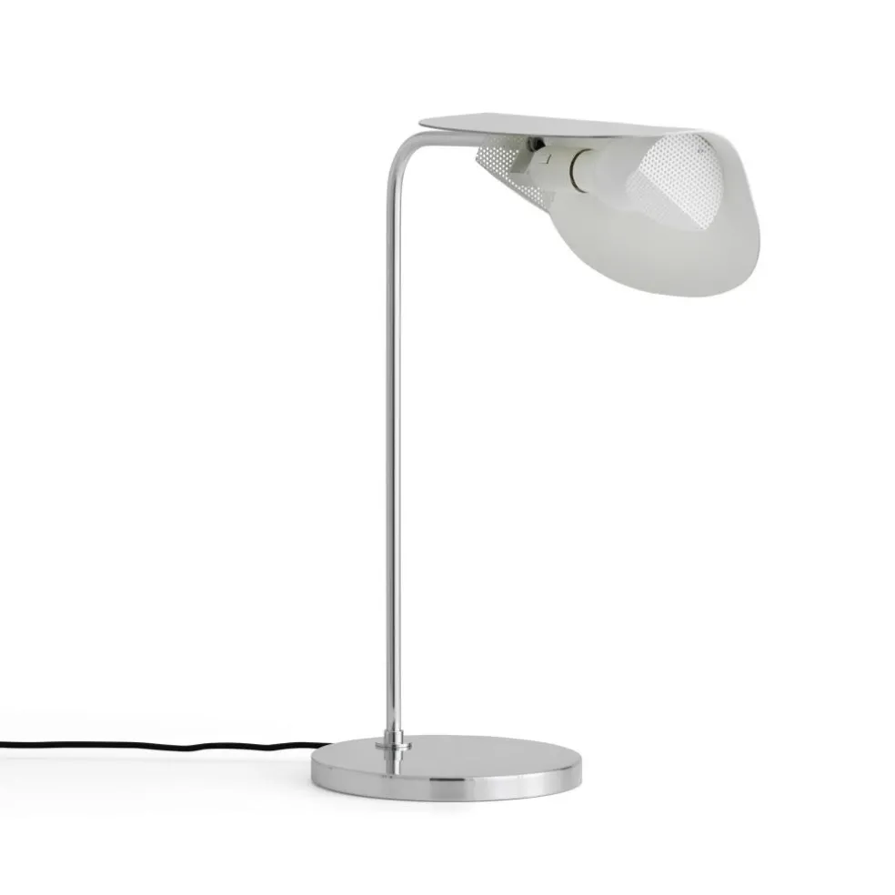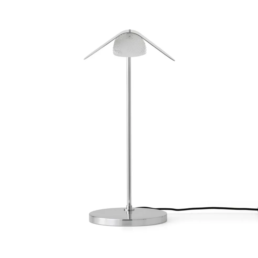 Die Wing Tischleuchte erweist sich als flexibel: Man kann den Leuchtenschirm nämlich um 360 Grad drehen und den Lichtstrahl dort hinlenken, wo er benötigt wird. Er erinnert in der Form eindeutig an die Flügel von Vögeln, den er seinen Namen verdankt. Kein Wunder, dass der schwedische Designer der Wing Tischleuchte diesen Namen gab. Sie wird aus poliertem Aluminium hergestellt. Der Aufbau folgt traditionellen Tischleuchten: Die Wing Tischleuchte steht auf einem runden Sockel, aus dem ein Stab entspringt. Er führt in einem Bogen zum Leuchtenschirm. In dem Leuchtenschirm wird ein Leuchtmittel mit E27-Fassung eingeschraubt. Aus dem durchlöcherten Diffusor dringt blendfreies Licht in den Raum.
