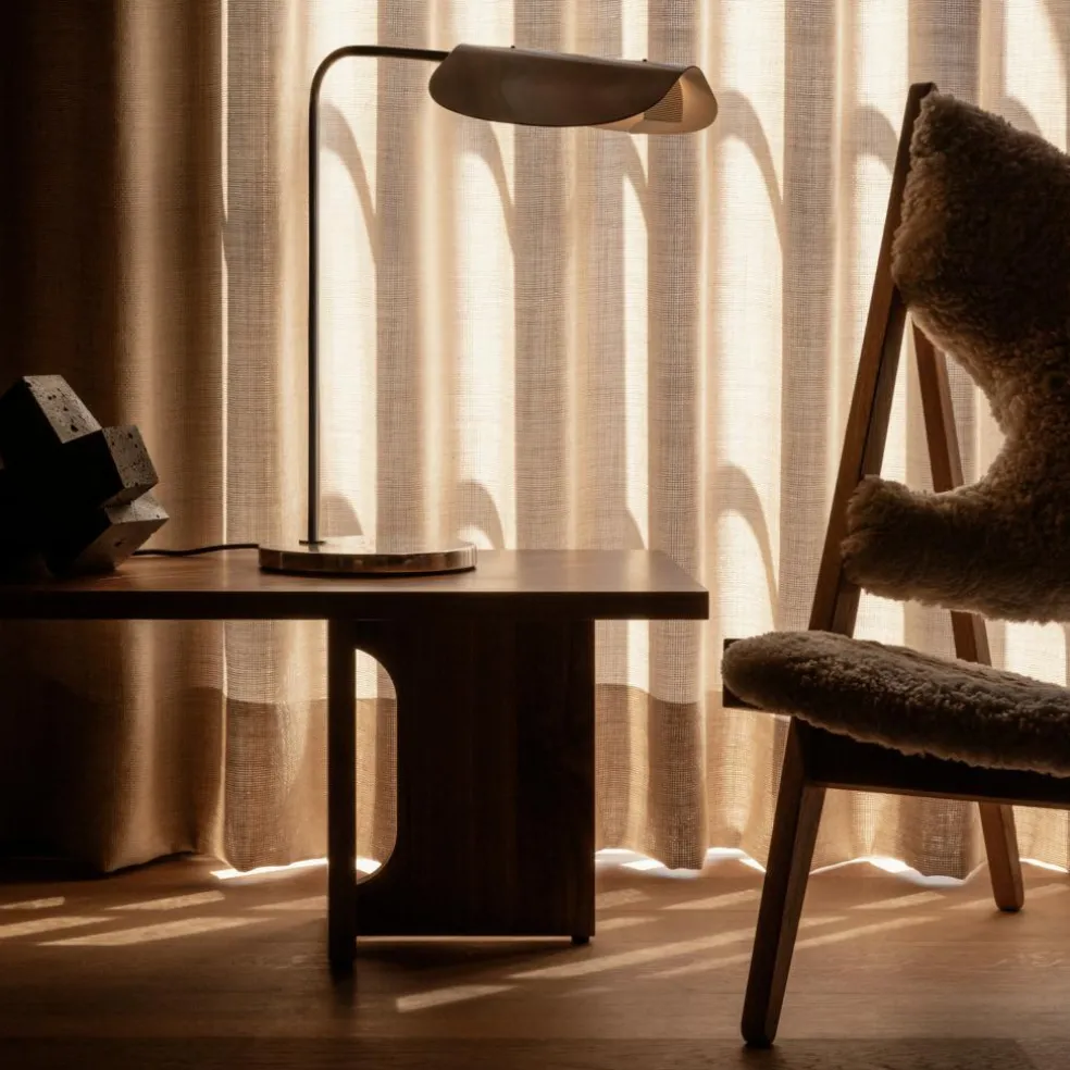 Die Wing Tischleuchte wurde von Kenneth Bergenblad für die Marke Audo entworfen. Sie gehört zu einer Leuchtenfamilie, die auch eine Standleuchte umfasst. Wer eine funktionelle und formschöne Leuchte für den Arbeitsbereich im Büro oder Homeoffice sucht, ist mit dem Modell gut beraten. Es eignet sich auch für das Fensterbrett, den Nachttisch oder ein Regal.