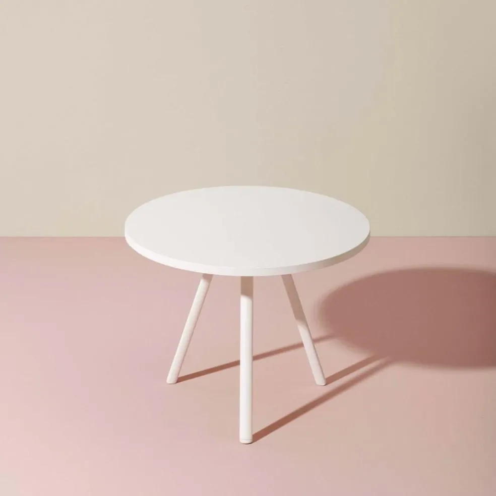 Der Zebra Garten-Beistelltisch balanciert grazil auf seinen drei konisch aufeinander zulaufenden Beinen. Die Tischplatte bildet ein perfektes Rund mit einem Durchmesser von 62 cm. Das Tischchen ist 45 cm hoch und passt so bestens zu niedrigen Lounge Stühlen. Es ist aus hochwertigem Aluminium gefertigt und so leicht, dass es sich einfach mit einer Hand hochheben und woanders platzieren lässt.